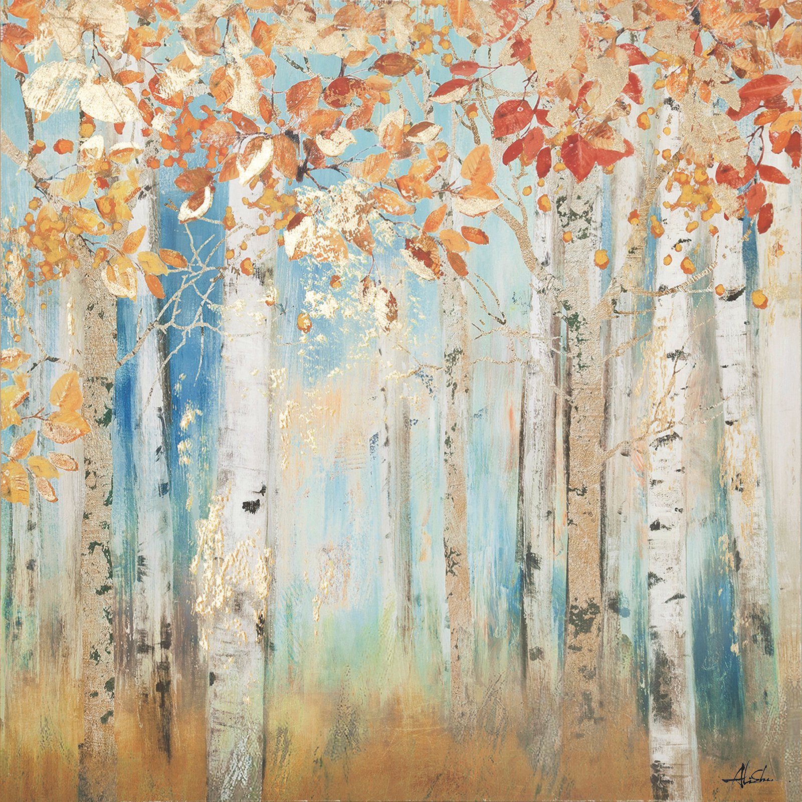 Yosemite Home Decor 40 in. x 40 in. "Birch Beauties I ... , This Piece Features A Hand Painted Pot With A Delicate Shrub On An Accordion Crinkle Style Sheet Of Metal.